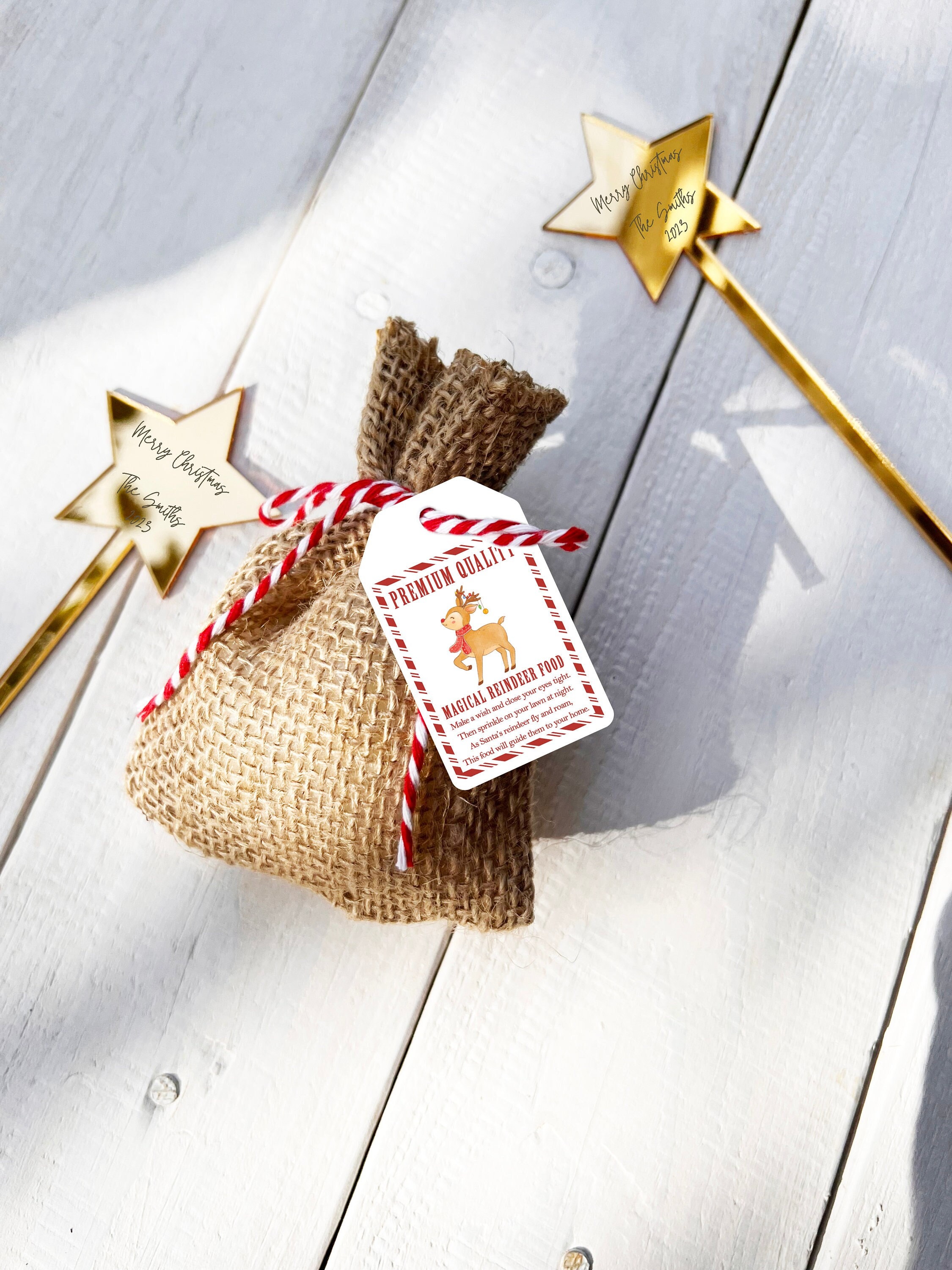 Introducing our delightful Personalized Reindeer Food, the ideal addition to your Christmas Eve Box or stocking stuffer! Our Magical Reindeer Food Bags are filled with exquisite natural birdseed, carefully crafted to sprinkle joy and wonder into your holiday celebrations. Handcrafted with love, these Christmas treats are heartwarming gifts that will delight children and adults alike. Add a touch of magic to this holiday season and create cherished memories with our personalized reindeer food.