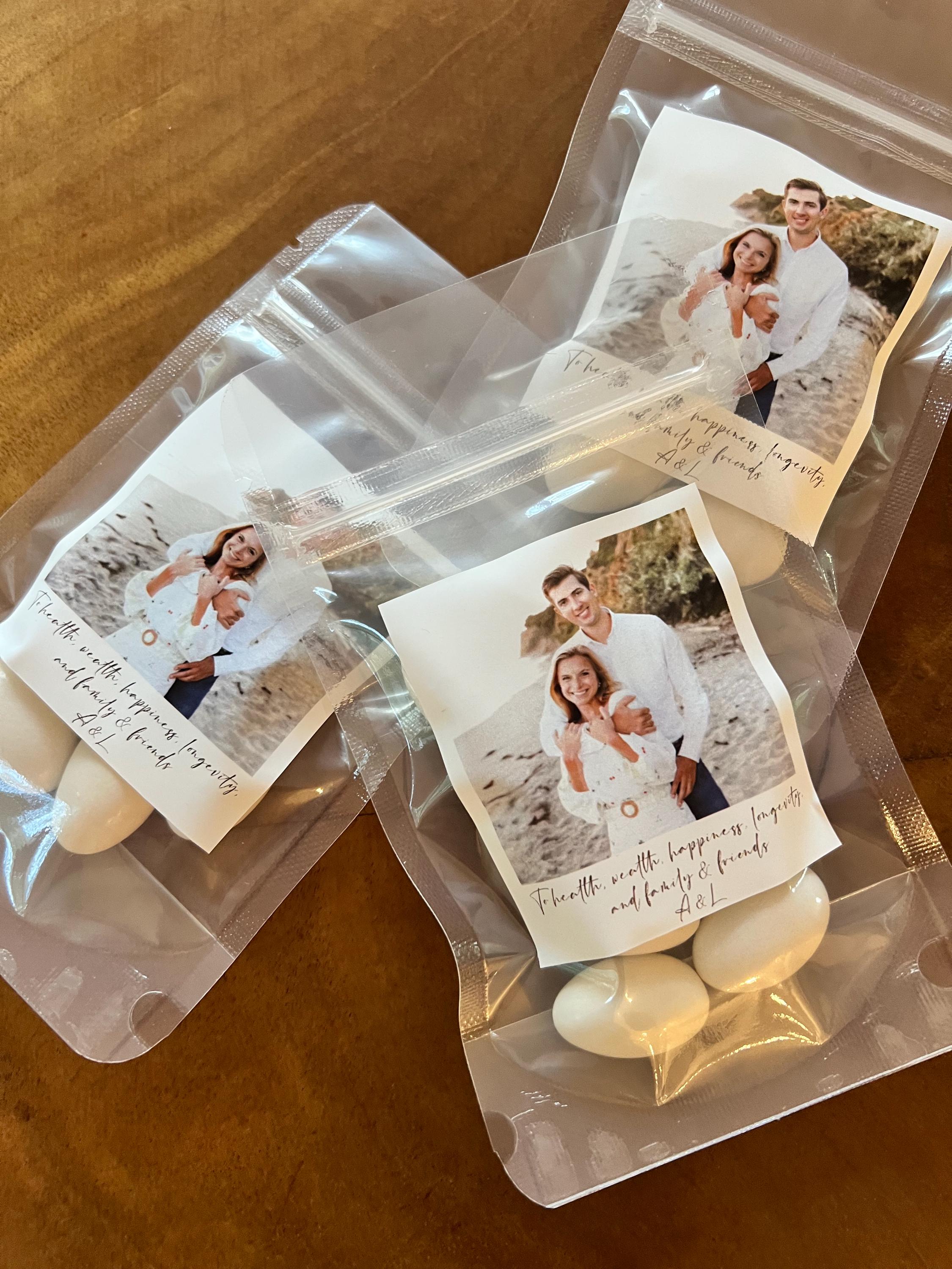 Welcome to our listing of "A Sweet Thank You Stickers and Bags" on Etsy! These unique bags with a clear window are the perfect gift for various occasions such as weddings, bridal showers, and more. They can be filled with coffee beans, candies, nuts, snacks, spices, herbal teas, or chocolates, making them a versatile favor option.