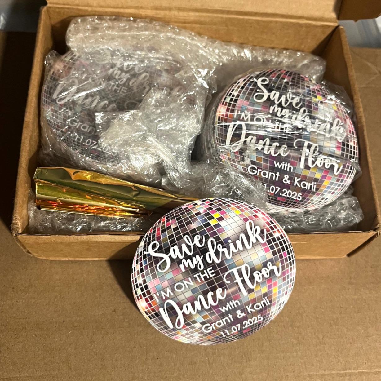 My dad is OBSESSED with disco balls, so we are excited to surprise him (and our guests) with these fun, no-hassle coasters and take-home items at our wedding. A little thinner than expected, but they are glossy and a great addition to our big day! Love the color and printing!