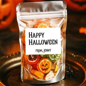 Welcome to our listing of "Halloween favor bags" on Etsy! These unique bags with a clear window are the perfect gift for various occasions such as halloween party, weddings, bridal showers, and more. They can be filled with coffee beans, candies, nuts, snacks, spices, herbal teas, or chocolates, making them a versatile favor option.