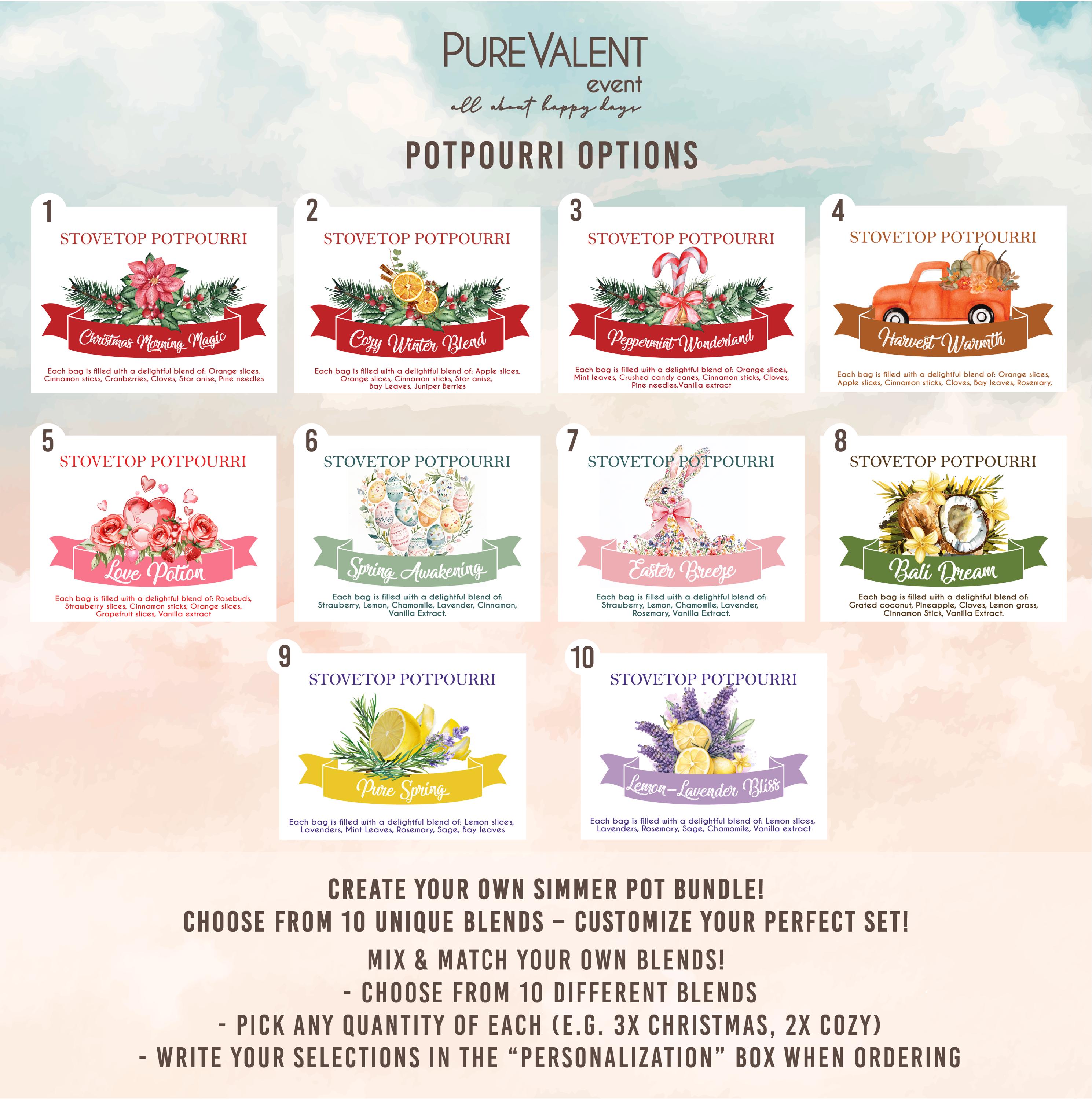 🎄 Each blend is carefully crafted with dried, all-natural ingredients that fill your space with the warmth and cheer of the season. Perfect for spreading the warmth and aroma of the festive season, these potpourries make an ideal gift/favor for various occasions, including Christmas, New Year’s Eve, Winter Gatherings, Thanksgiving, Weddings, Birthdays, and more. It’s also a thoughtful choice for corporate gifts, business promotions, or staff appreciation. Perfect for holiday gatherings, cozy nights in, or as a thoughtful gift for loved ones. Personalize your tag and select your preferred scent in the customization section!