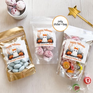 Happy Halloween favor bags - halloween party favors - halloween classroom gifts - treat bags - STICKERS and BAGS ONLY - Candy Bags for wedding, Custom Favor Bags.